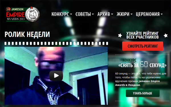 Компания Jameson напоминает о том, что сейчас идет новый этап знаменитого конкурса "Снять за 60 секунд". Работы на конкурс принимаются до 21 декабря 2012 года.