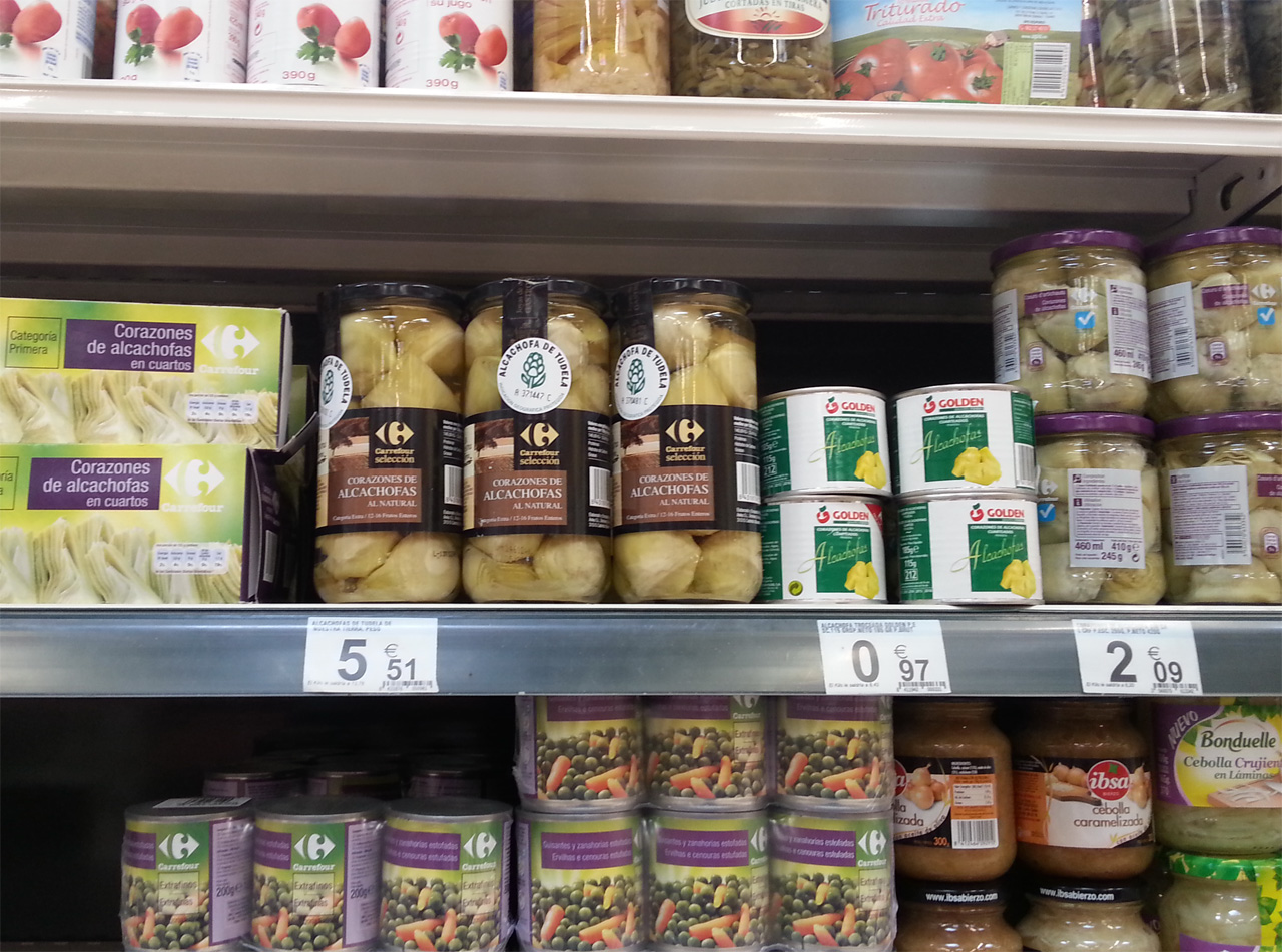 Я вообще артишоки как-то никогда не любил. Несколько раз попадались в ресторанах (например, на Кипре) - я так и не понял, что там есть и в чем вообще смысл. А тут, в Испании, случайно наткнулся на консервированные сердцевинки артишоков - теперь покупаю постоянно: очень вкусно и само по себе, да и в салаты отлично добавлять - вместе с консервированной же спаржей, коей тут миллион различных видов.