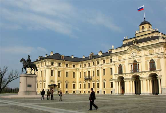 Резиденция прикольная, однако несколько удивил тот факт, что этот константиновский дворец почему-то преподносится как дом-музей и вообще - историческая реликвия. Реликвией он, может быть, когда-нибудь станет, но лет через двести, не раньше. Потому что построен он - в 2005 году. Так что какой из него дом-музей - ни черта не понятно. Ну да, на этом месте когда-то стоял Константиновский дворец - строение с несчастной судьбой. Его строительство затеяли при Петре, но когда Петр умер, архитектор, строивший дворец, уехал за границу вместе с чертежами. Потом строение кое-как достроили, но в революцию его пожгли. Потом опять восстановили и сделали там колонию для беспризорников. После этого - арктическое училище. В войну здание опять было разрушено. Восстановили. Сделали санаторий. А уже в XXI веке снова отстроили и сделали "Дворец конгрессов".