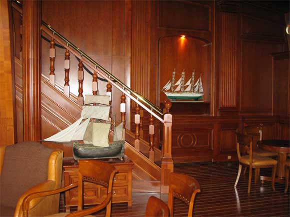 А четырехмачтовый барк "Седов", чья моделька на заднем плане зеленеет, какое отношение к Петру или Константину имеет? Кораблик мало того, что в 20-м веке построен, так еще и в Германии. Или по петровскому проекту его строили?