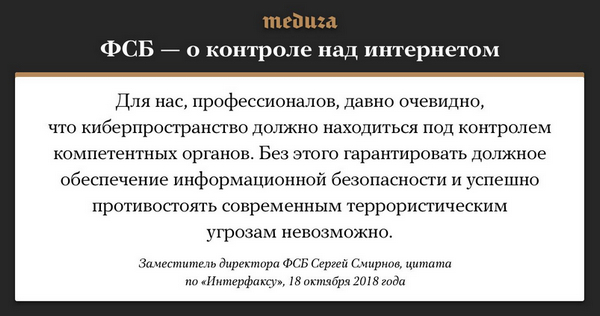 «Для нас, профессионалов, давно очевидно, что киберпространство должно находиться под контролем компетентных органов. Без этого гарантировать должное обеспечение информационной безопасности и успешно противостоять современным террористическим угрозам невозможно»