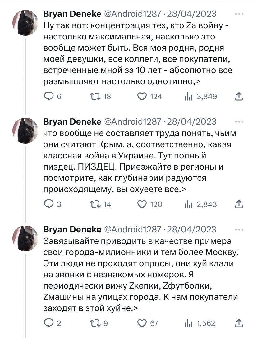 Интересное наблюдение последних пару месяцев. Если человек гомофоб, и при этом не имеет отношение к Украине и России, то вероятней всего в этой войне он на стороне "представителей"... традиционных ценностей. Не замечая при этом кавычек.