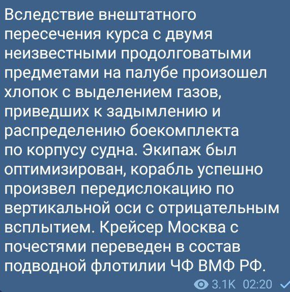 Хотя, возможно, это случайность и крейсер уничтожен Нептуном. Что ж, тогда честь и хвала украинскому оборонпрому. Ну и ВСУ, конечно же.