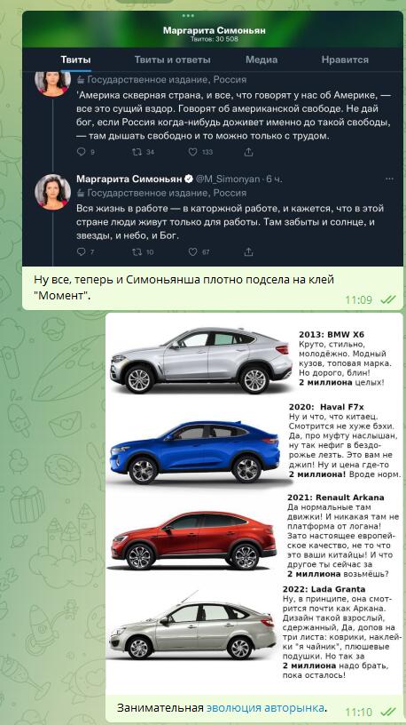 "Друзья и соотечественники. Мы эпично обосрались с трехдневной войной и парадом в Киеве. Не задалось и с газовым шантажом в Европе. По какому-то там хрен знает по счёту пакету санкций у нас только что отобрали даже шрифты Arial и Times New Roman. Ввиду бездарного командования и отсутствия прикрытия, колонны нашей техники сжигались пачками, а сегодня крейсер "Москва" произвёл отрицательное всплытие с высвобождением экипажа. Инфляция в стране бьёт все рекорды, магнитные антивор-защелки уже ставятся на детское питание и пачки с сыром, а вчера председатель Совета Федерации вдруг внезапно узнала, что мы в стране не можем произвести без посторонней помощи даже гвозди. Все наши платежные системы и золотовалютные резервы заблокированы за рубежом, от нас уходят сотнями иностранные компании, наша нефть практически не продаётся, даже с дисконтом, приложения основных банков удалены из Google/Apple, Китай смотрит на всё со стороны и даже Union Pay вместе с Huawei не хотят нам помогать, а в ООН нас поддерживает только Эритрея".