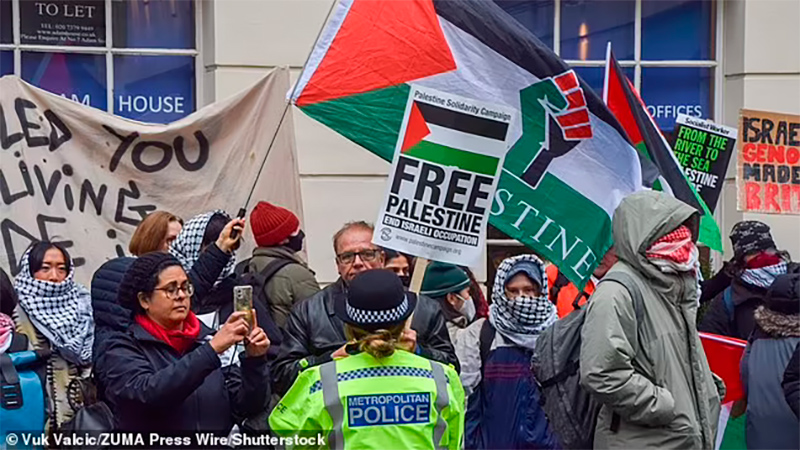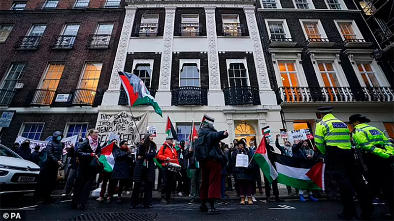 Пропалестинский митинг перед зданием Королевского общества искусств в Лондоне