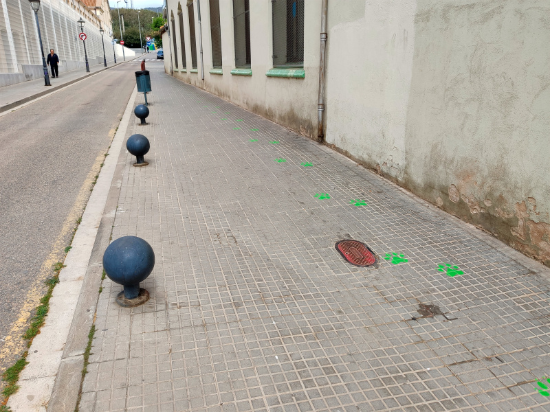 У детского сада, находящегося неподалеку, на асфальте нарисовали кошачьи лапки - вот такие.