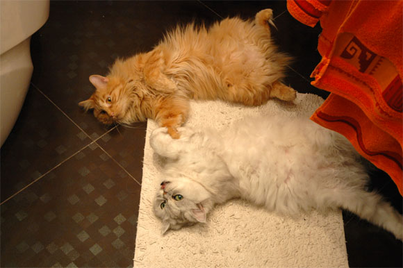 Рыжая - курильский бобтейл, породистая. Белый - персик, но так, выбраковка.