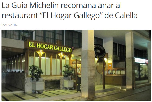 Прочитал заметку о том, что ресторан "El Hogar Gallego" ("Галисийский уголок") внесен в мишленовский гид. Это еще не мишленовская звезда, но упоминание в гиде - это уже круто.