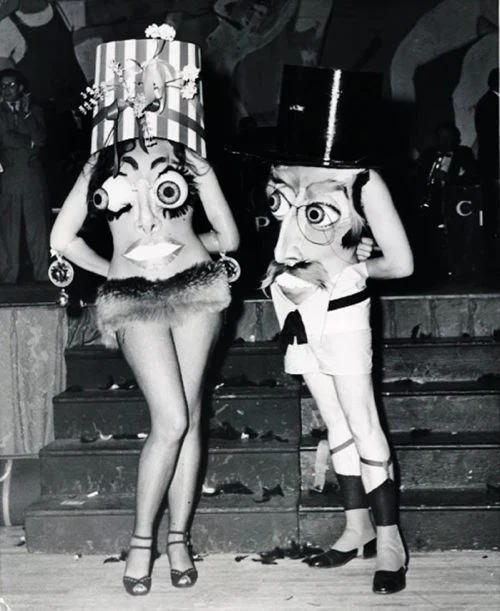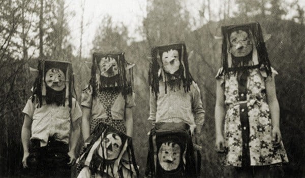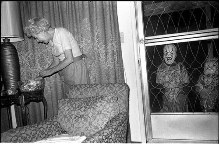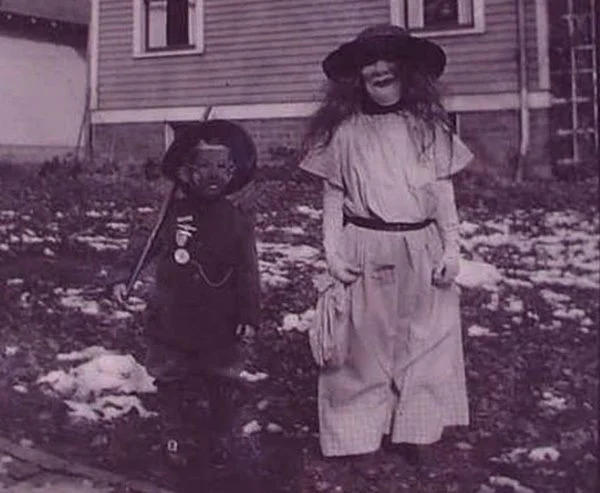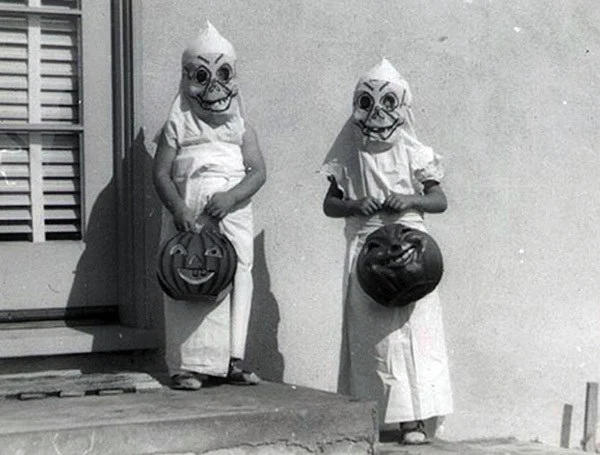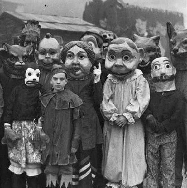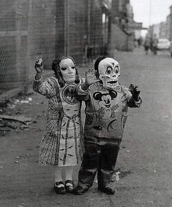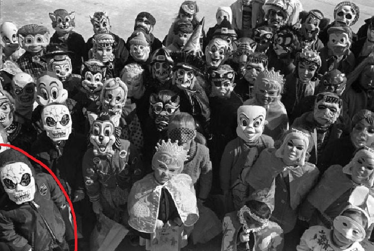 В левом верхнем углу ребёнок в маске тролля - а Troll dolls появились только в 1959-м, так что фотография, скорее всего, где-то из начала 1960-х, не раньше.