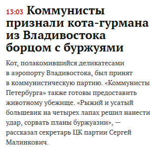 Одобрям! И кота и Коммунистов Петербурга! Пойду к холодильнику...если найду там что нибудь пожевать, то считайте меня коммунистом!