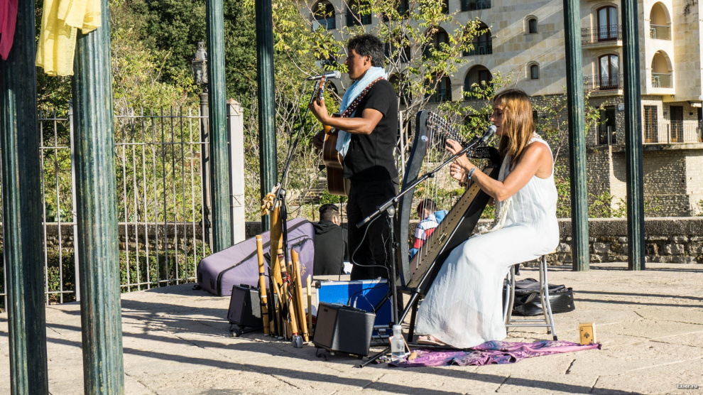 Пара музыкантов создают соответствующее настроение, исполняя красивые испанские мелодии.