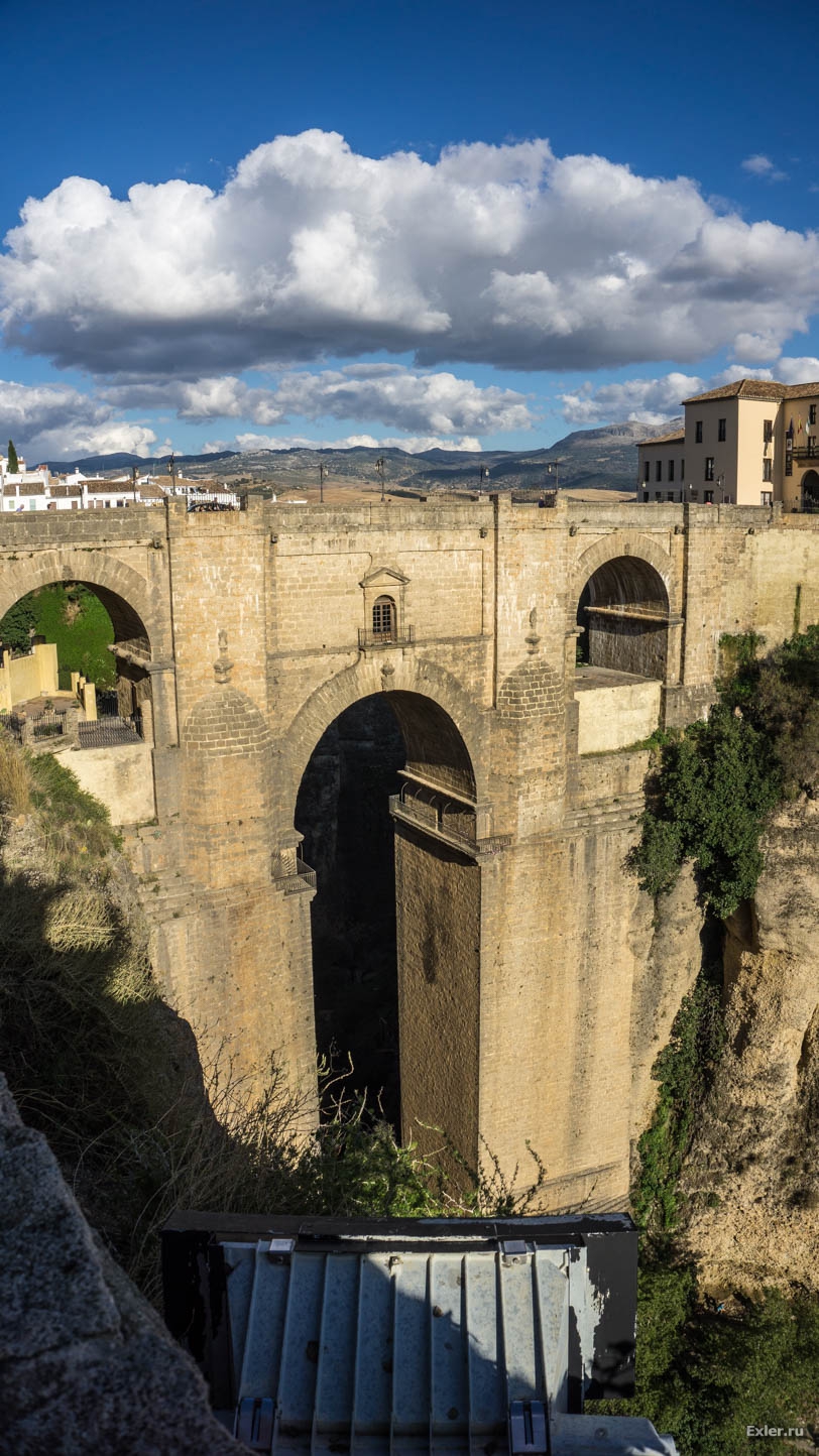 А это главная достопримечательность Ронды - мост Пуэнте-Нуэво над ущельем Эль-Тахо. Ущелье глубиной 100 метров. Как такое можно было построить в XVIII веке - просто непонятно.