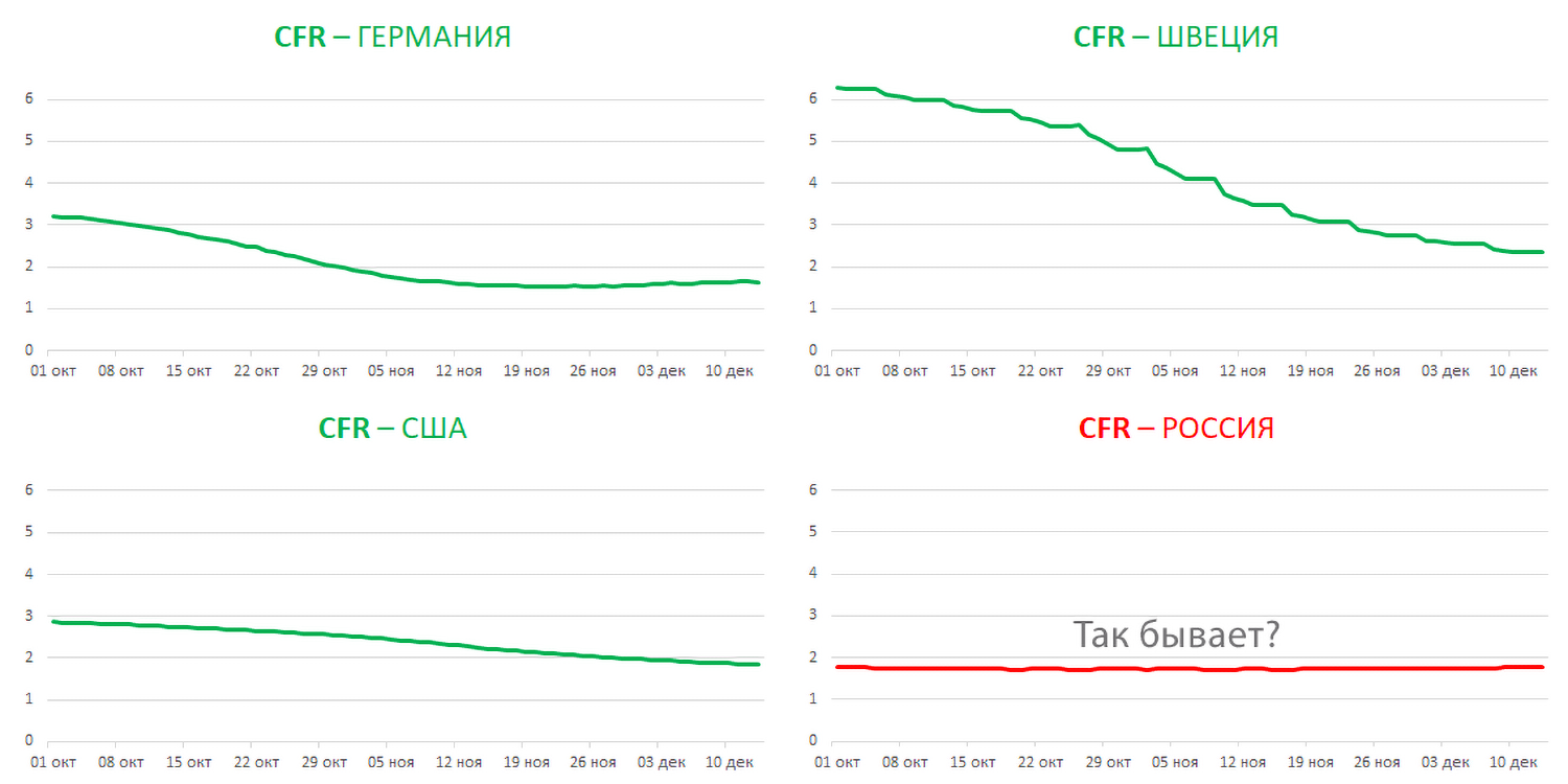 2) Искусственно ограничиваются данные и по заболеваемости, и по смертности (при этом второй параметр также жёстко лимитирован по отношению к первому).