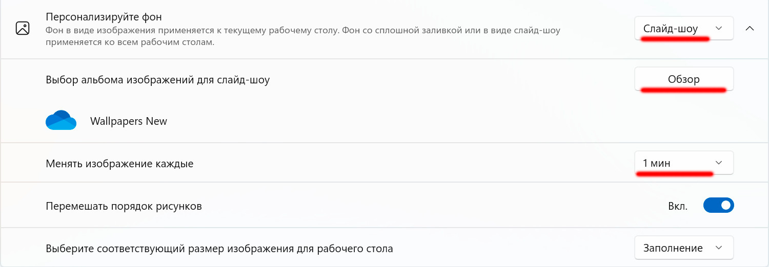 "Там выбираете "Слайд-шоу", в "Обзоре" указываете папку, где лежат всякие красивые фото..."