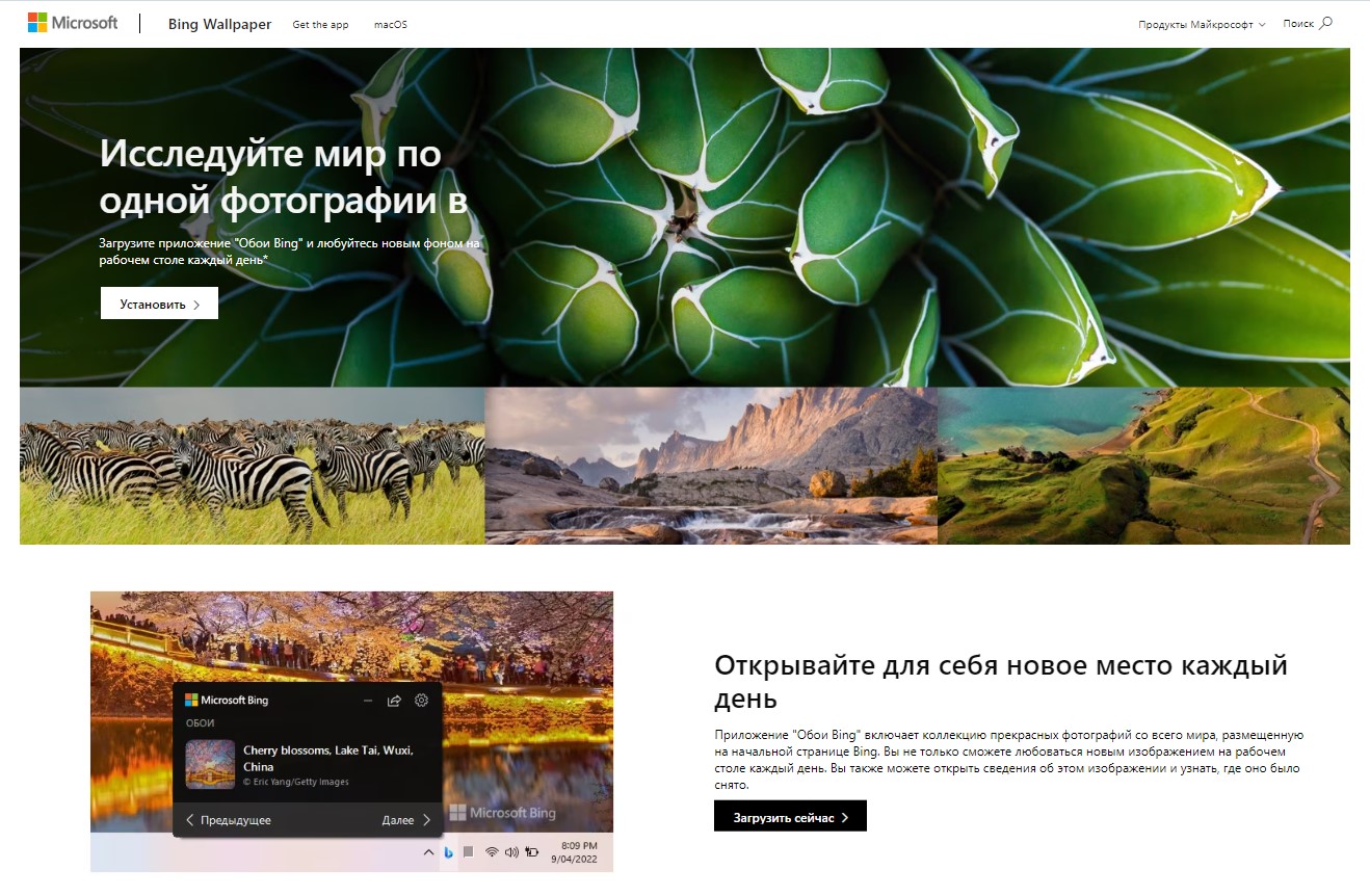 Она умеет не только брать обои дня с сайта майкрософт, но ещё и ежедневную заставку с Bing и ставить как на рабочий стол, так и на экран блокировки, причём можно каждому указать свой источник.