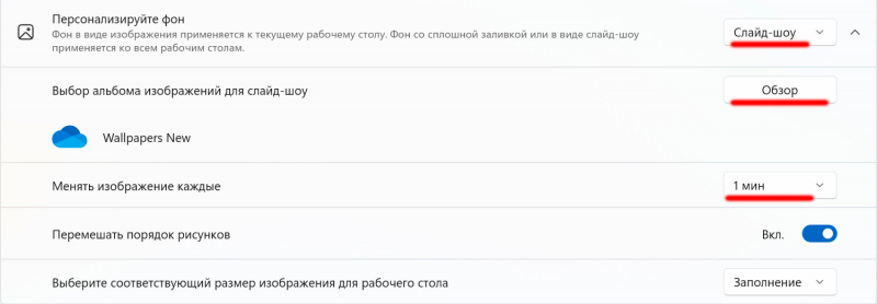Там выбираете "Слайд-шоу", в "Обзоре" указываете папку, где лежат всякие красивые фото, ниже устанавливаете частоту смены изображений. К сожалению, после 1 мин идет сразу 10 минут и, на мой взгляд, тут не хватает еще 2, 3 и 5 минут для разнообразия.