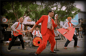 Они просто записывались, они сделали аудиотрек к совершенно культовому и совершенно недооцененному некоторыми (в том числе и мною на тот момент) фильму "Шестиструнный самурай", и они реально классные ребята, которые поют на английском с восхитительным и нарочитым русско-одесским акцентом. Если вы ни разу не слышали "Красных Элвисов" - вот как раз пришло время.