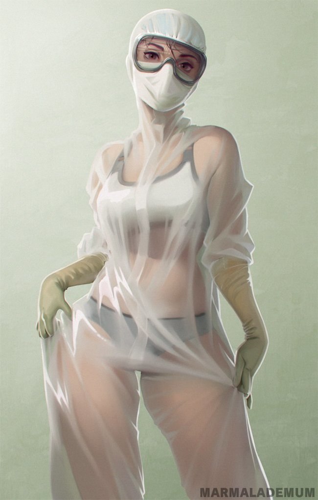 Не удалось выяснить ещё зачем врачи-герои носят полиэтиленовые костюмы. Вроде бы вирус не передается через кожу? Но возможно они об этом не знают, герои не обязаны иметь хорошее образование (вот Грета-герой тоже же ) или это такой костюм героя типа плаща супермена...