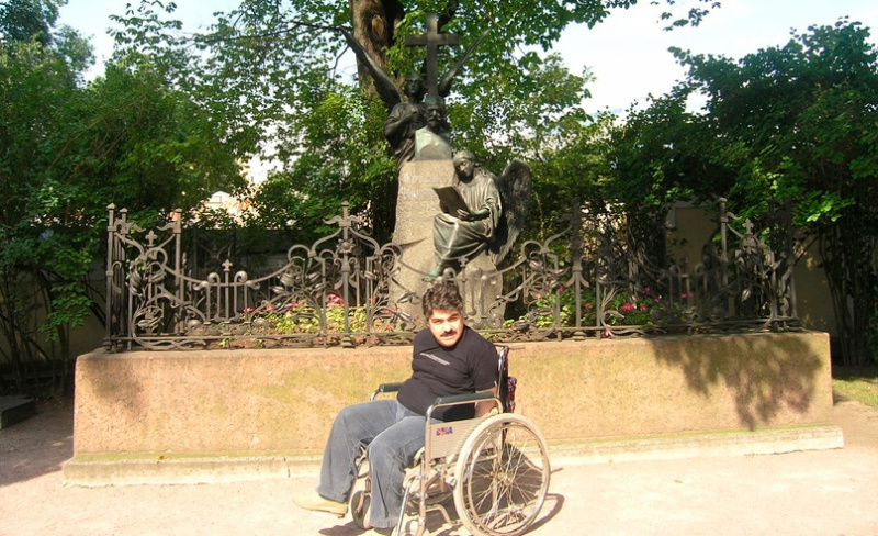 И тут, конечно же, нужно пояснить, кто он такой. Рубен родился с тяжелейшим детским церебральным параличом (ДЦП). Руки у него не работают, а точнее - живут собственной жизнью, Рубен ими управлять не может. Ходить Рубен также не может, однако он может двигать ступнями ног. И вот при наличии такого тяжелейшего заболевания Рубен: сначала получил неполное среднее образование, затем полное среднее в физико-математической школе, после этого получил высшее образование на заочном отделении немецкого педагогического факультета в Московском лингвистическом университете имени М.Тореза.