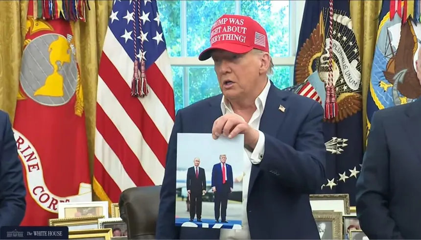 Трамп вчера встречался с журналистами. На эту встречу он заявился в бейсболке с надписью "Трамп был прав во всем", собравшимся с плохо скрываемой гордостью демонстрировал свое фото с Путиным в Анкоридже. По-видимому, Трамп считает своим главным геополитическим достижением демонстрацию перед всем миром того, как президент США расстилался перед российским диктатором - военным преступником и убийцей.
