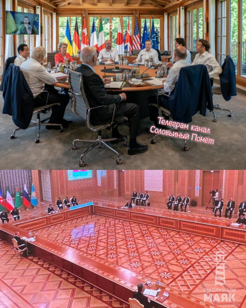 Сравнение фотографий с саммита G7 и каспийского саммита уже было? Я вот не понимаю, он, его окружение и другие лидеры, которые приехали на каспийский саммит разве не понимают, что выглядят жалкими клоунами на глазах у всего мира? Самим не стремно, не обидно?