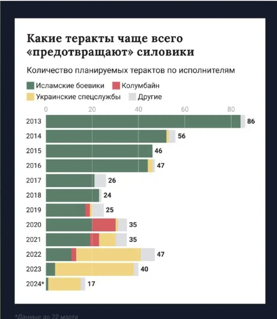 «Все четверо непосредственных исполнительных терактов, все те, кто стрелял, убивал людей, найдены и задержаны. Они пытались скрыться и двигались в сторону Украины, где по предварительным данным для них с украинской стороны было подготовлено окно для перехода к государственной границе», - заявил Владимир Путин в обращении к гражданам спустя 20 часов после одного из самых кровавых терактов в истории России.