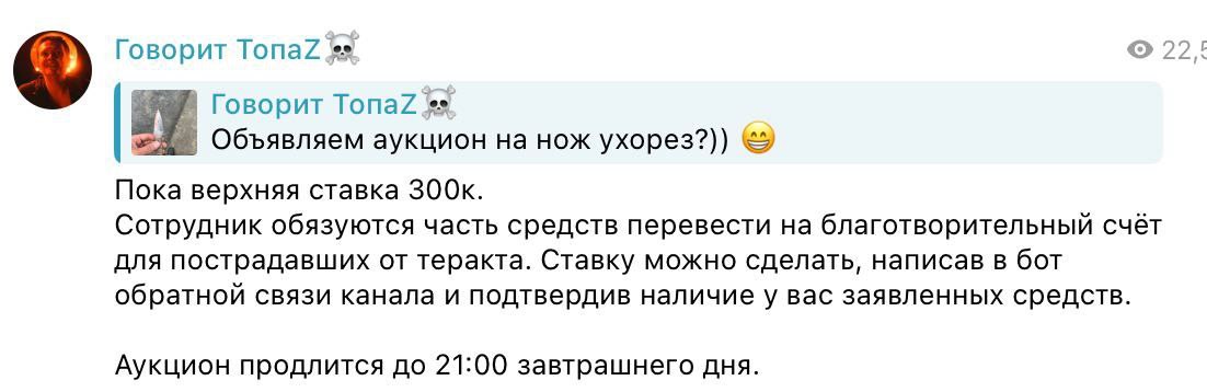 - Не знаю, по телеграм написали, без имени, без фамилии, без ничего.