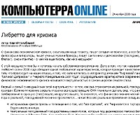 Алекс, статья в "Компьютерре" на мой маркетологический вкус весьма дельная, вот только, ИМХО, Голубицкий ошибся в одном: принял увертюру к кризису за сам кризис и одну из его основных причин - за единственную. А ведь это даже не начало ... Давеча докладывал я своим клиентам результаты исследования (восемь месяцев потратил на связь концов с концами, просто для себя работа делалась) на предмет - что же это за кризис такой, которым нас так пугают ? Получилось малость обескураживающе. В общем, мало не покажется, никому, и что самое противное - источники, вызывающие наибольшее доверие (то есть не проплаченные какой-либо из заинтересованных группировок), сходятся во мнении, что кризисные процессы закончатся где-то к концу двадцатых годов, такие дела.