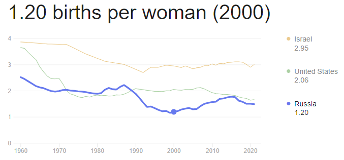 Путин всерьез обеспокоен сильным падением рождаемости в РФ. Воевать он собирается бесконечно, тем более что на территории РФ будет все больше и больше зон, контролируемых ВСУ, пушечное мясо при мордорских методах ведения войны, которые даже еще более зверские и бесчеловечные, чем при Сталине, расходуется очень быстро, ну и где потом Путину брать новое пушечное мясо? Фраза "Мамки других нарожают" как-то уже не очень работает, так как мамки что-то не горят желанием производить для Путина новых потенциальных могилизованных.