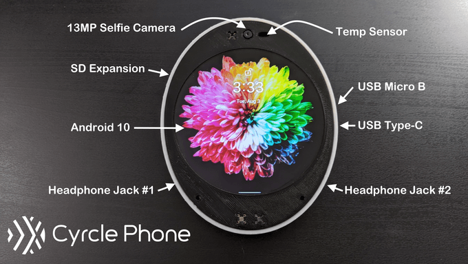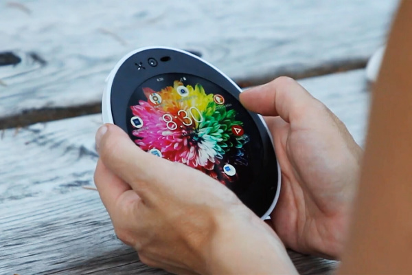 Круглый корпус, по словам производителя, идеально ложится в руку. При этом он сделан из полностью разлагаемого биопластика на основе кукурузы. Компании пришлось доработать Android и некоторые приложения, чтобы они естественно выглядели на круглом экране. Разработчики реализовали режим произвольной формы, при котором пользователь может свободно менять размер окон приложений и перемещать их по экрану.
