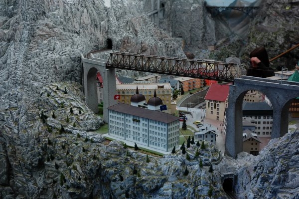 А авто тоже двигаются? Ведь в отличие от игрушечной ж/д, сделать их движущимися (со всеми необходимыми ограничениями) много труднее. Поезд по рельсам получает электропитание и они же задают направление (чтобы с рельсов поезда не сходили, достаточно, чтобы игрушечная АСУ на виражах сбавляла скорость; впрочем, есть и другие методы). С авто так просто не выходит. Да и с водяным транспортом тоже. Неужто радиоуправление + автошофёр? Не верится как-то - дороговато это...