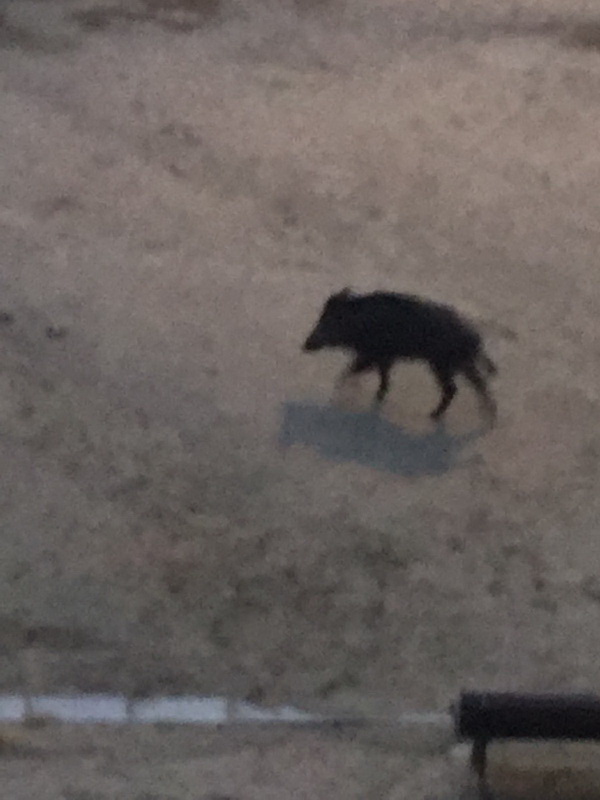 У нас в городке появилась совершенно новая тема - дикие кабаны. У них то ли пропитания не хватает, то ли ещё чего: спускаются с холмов и ночью ходят по городу. Иногда целыми выводками - кабан, кабаниха и кабанчики. Пока вроде неагрессивные и на людей не бросаются, но я еще по своему деревенскому детству помню, что наткнуться в лесу на кабана - дело довольно опасное.
