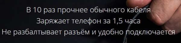 Особенно про "заряжает телефон за 1,5 часа" понравилось, это уж совсем для идиотов. Я думаю, надо купить такой кабелек, подключить к смартфону и потом подать на этих ребят в суд, так как за 1,5 часа телефон не зарядится ни на один процент.