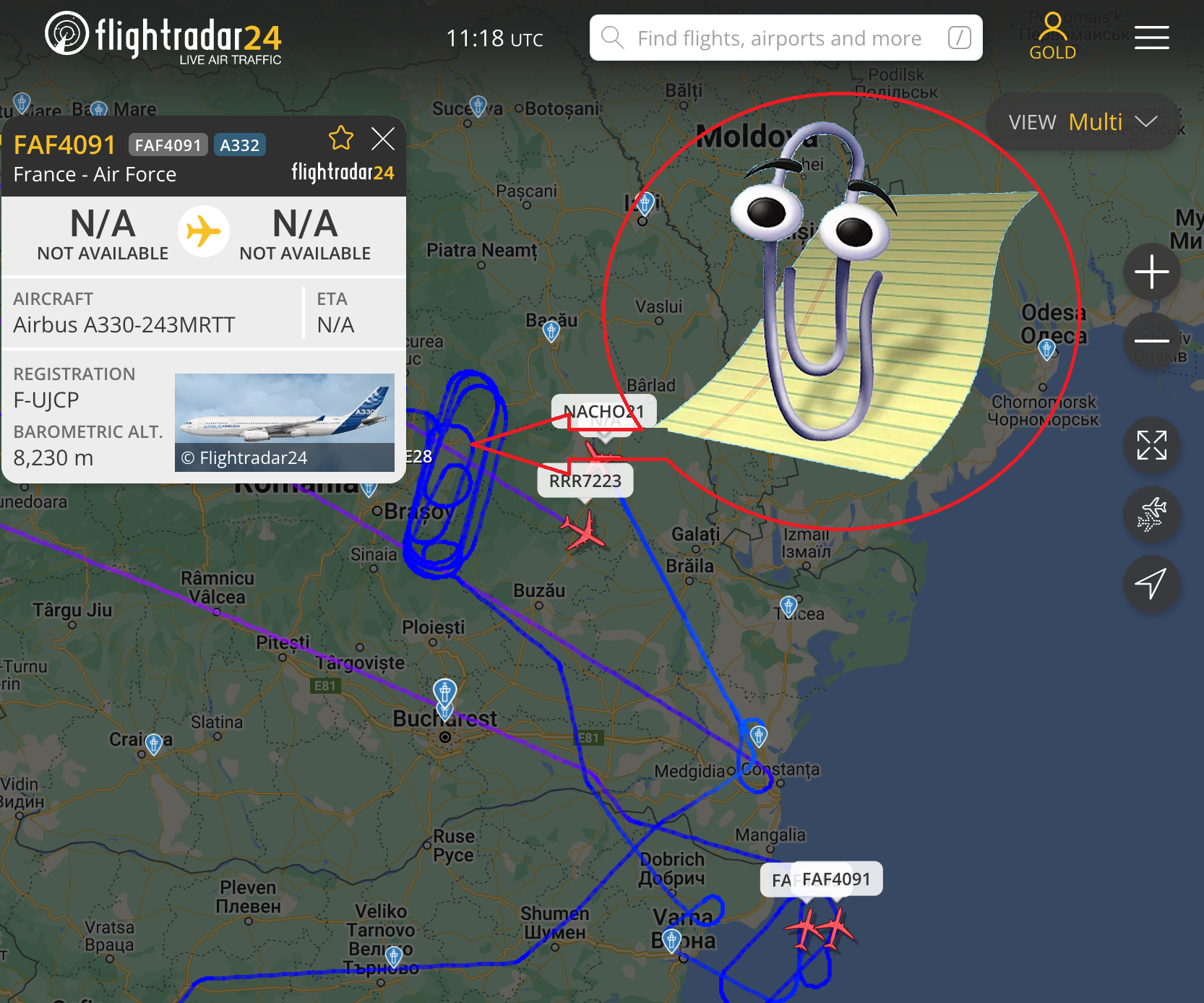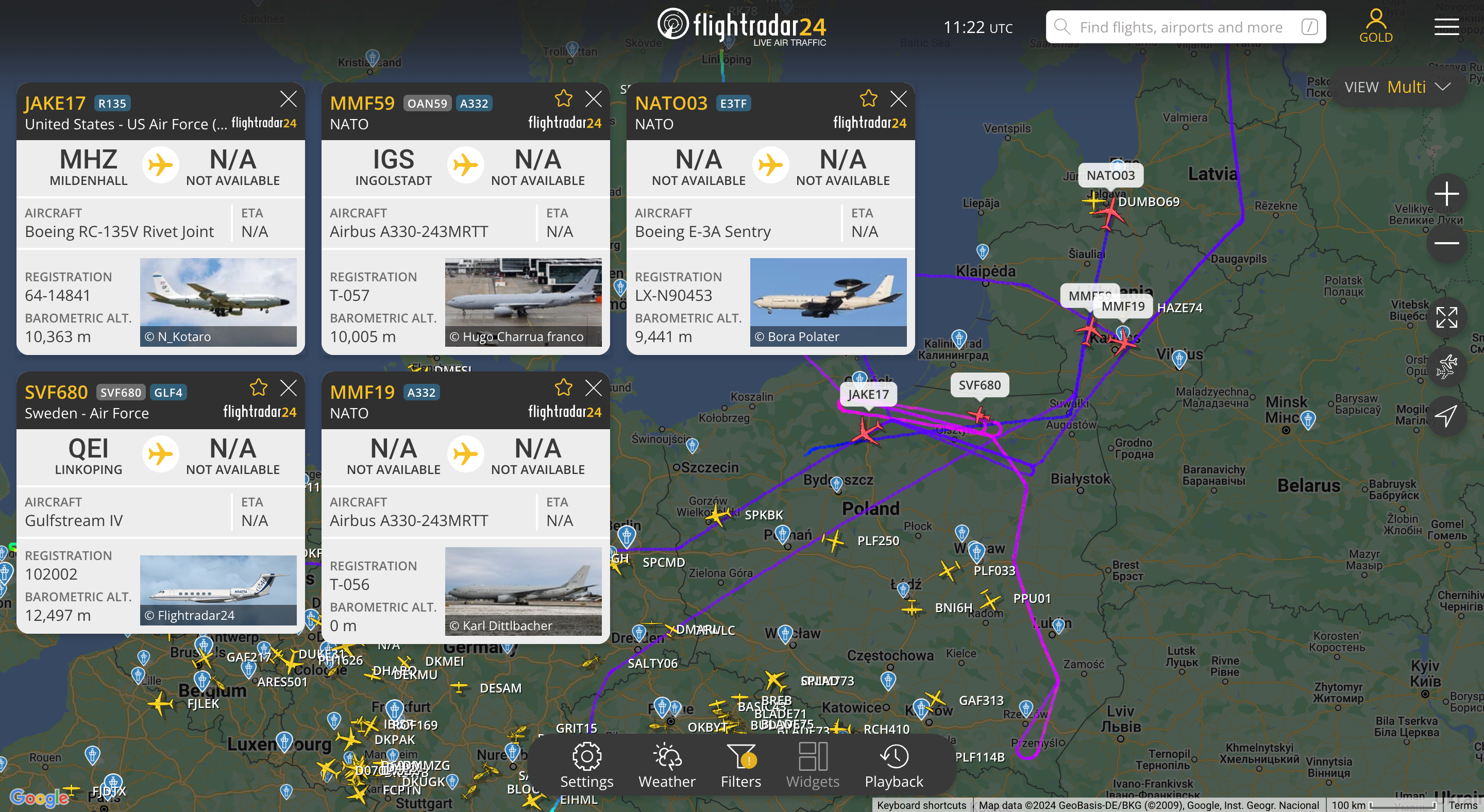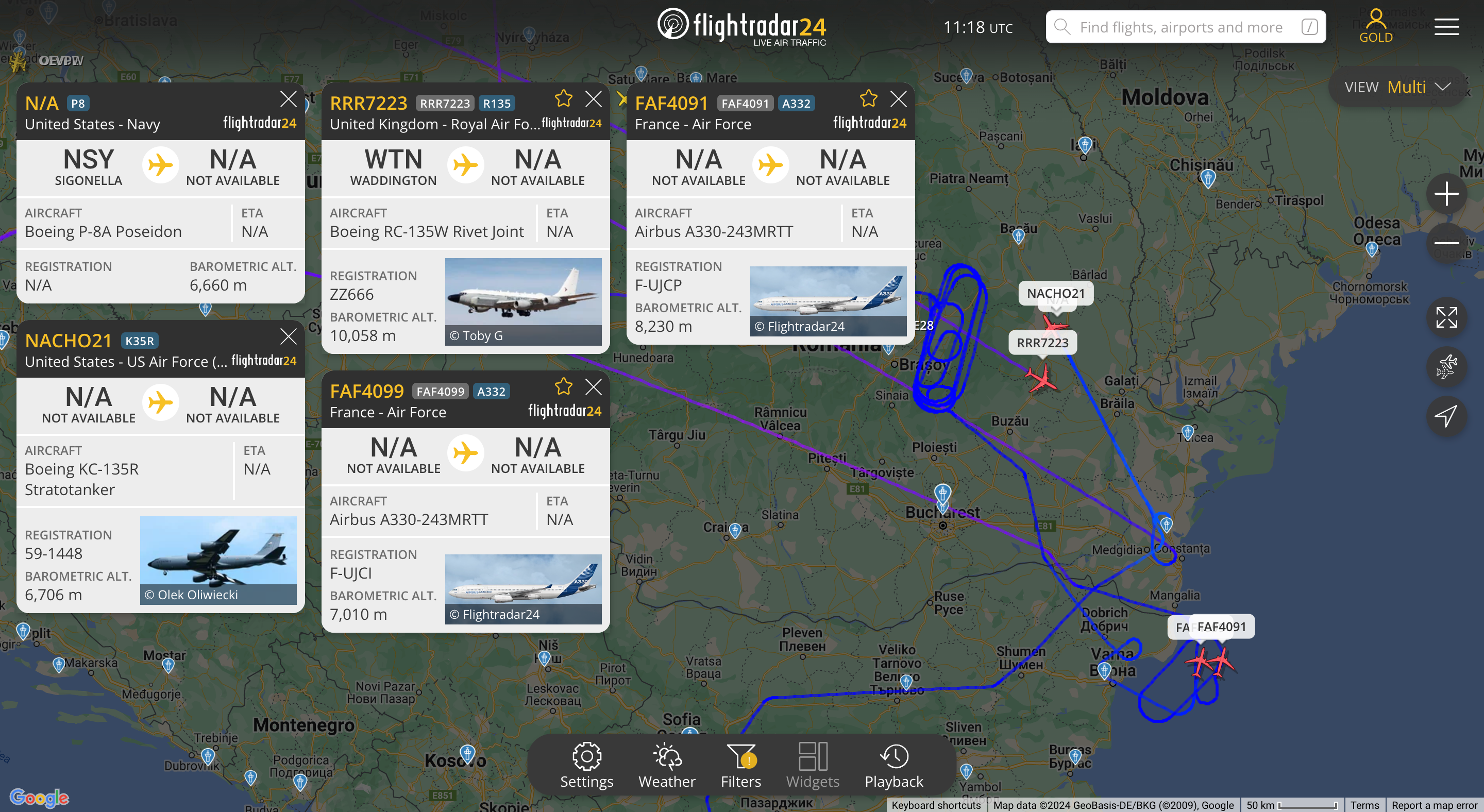 И всё это подтверждается высокой активностью самолетов и беспилотников стран НАТО. В воздухе были американские U-2S, P-8A, два MQ-9A Reaper, а также британский RC-135V и французский самолёт ДРЛО Е-3F в сопровождении четырех истребителей Rafale.