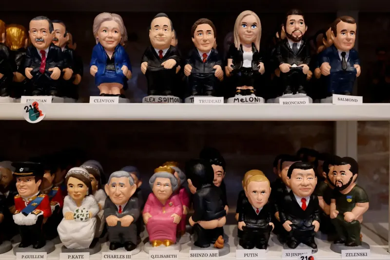 Тюрьма Puig les Basses научила заключенных делать статуэтки в сотрудничестве с частным семейным бизнесом Caganer.com, который в этом году пополнил свою коллекцию из более чем 600 моделей президентом Украины Владимиром Зеленским и премьер-министром Великобритании Риши Сунаком, включая президента России. Владимир Путин, покойная королева Елизавета II и ее сын и преемник король Карл III.