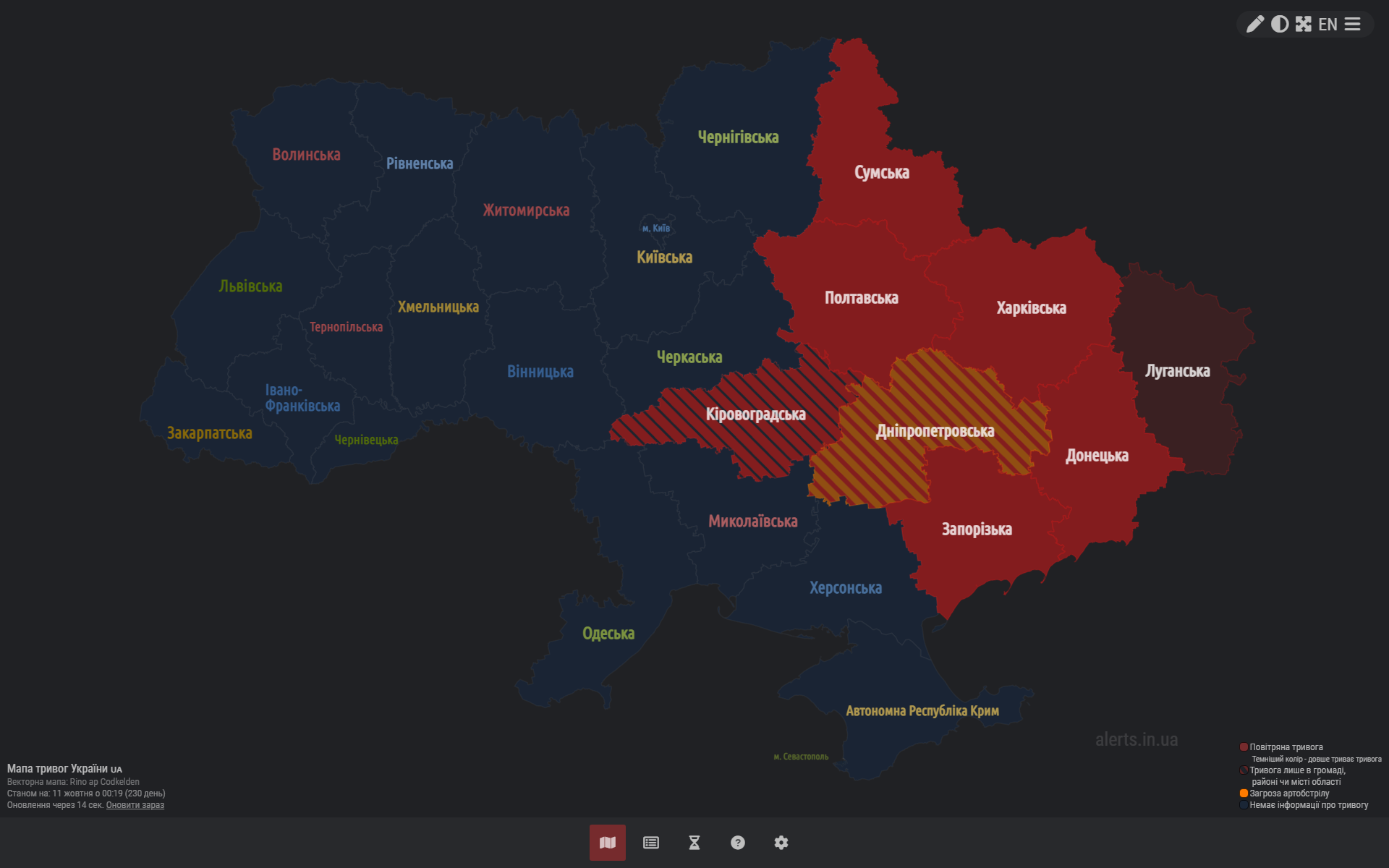 Опять вся страна красная. Ну хоть без массовых обстрелов.