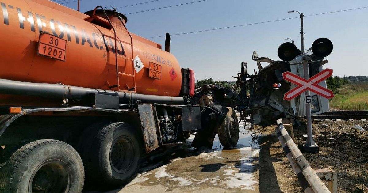 "В Анапе на железнодорожном переезде столкнулись бензовоз и электричка ..."