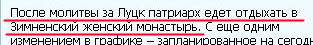 Совершенно идиотская история. Я там отдыхал по соседству в это время. В этом монастыре есть специальные комнаты для гостей, где часто отдыхают заезжие политики (тот же Кучма там отдыхал), к женским кельям это не имеет никакого отношения. Патриарху просто негде больше было остановиться перед посещением Владимир-Волынского. Ну не в единственном же отеле города, в конце концов?