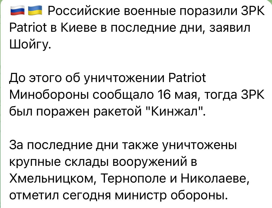 ⚡️Шойгу: потери ВСУ в мае составили свыше 16 тысяч военнослужащих, 16 самолетов, пять вертолетов, 466 беспилотных летательных аппаратов, более четырехсот танков и других боевых бронированных машин, 238 орудий полевой артиллерии и минометов.
