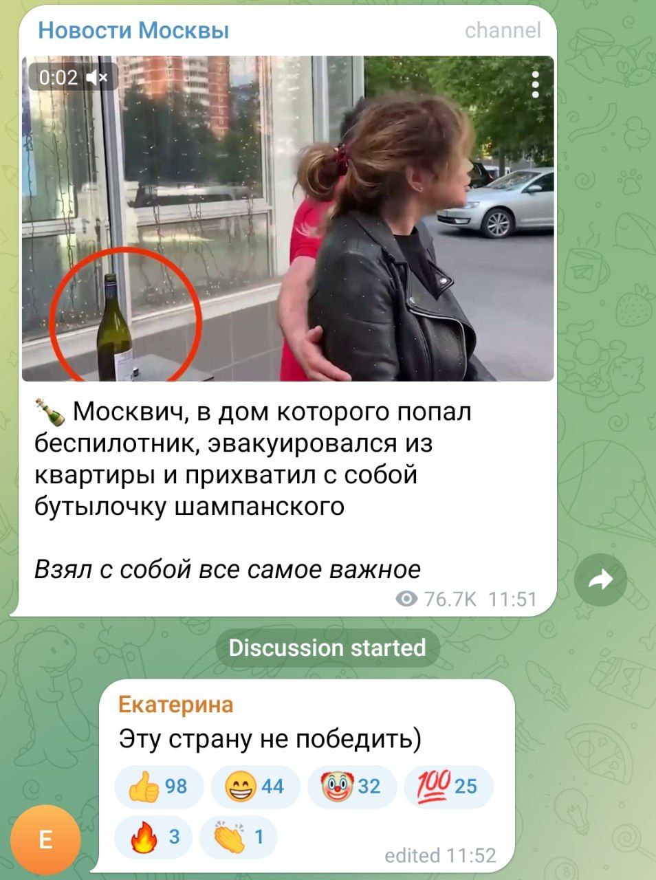 Сейчас эта странная атака Москвы, после которой прошло более 5 часов - околонулевая реакция властей, кроме жалкого лепета ССС. Опять же, если бы была провокация ФСБ, то наверное бы что-то срочное бы объявили: всеобщую мобилизацию, удар ТЯО, насильственную депортацию с Жуковки в безопасное место или ещё что-то. Но вангую, что в итоге не будет НИЧЕГО. Через пару дней все забудут и сделают вид, что всё хорошо. Оркестр и дальше будет играть на палубе этого Титаника, а официанты разносить закуски и коктейли.