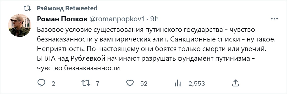 Та "илита" боится только путлера и боится она его сильнее любых дронов, хоть на них сама Олбрайт прилети с "толстяком".