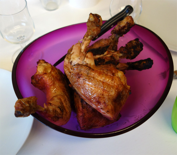 Ну и в результате получилось очень и очень вкусно: понравилось, теперь так и буду ее делать. На угольном гриле курицу, конечно, готовить очень непросто (лучше жарить на непрямом огне, но это долго и хлопотно, уж проще в духовке), но у меня тут на подходе газовый гриль - на нем такие вещи готовить заметно удобнее.