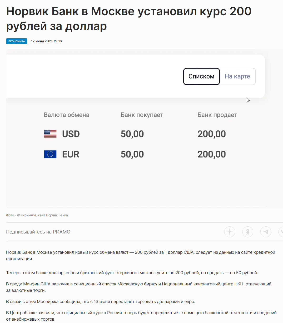 ▪️Прекращение торгов евро и долларами на бирже приведет к появлению параллельных курсов, сказал «Агентству» экономист Дмитрий Потапенко. «Черный рынок был, есть и будет, и скорее всего спекулянты поднимут курс валют», – считает эксперт. По его мнению, на фоне прекращения биржевых операций с долларом и евро приобрести их россиянам станет еще труднее.
