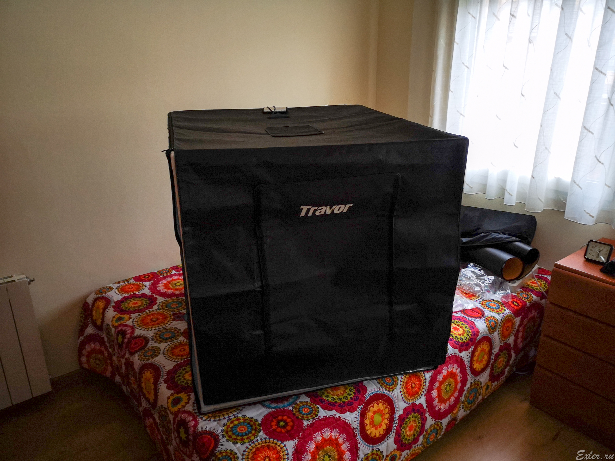 Решил заменить. Поизучал, что на эту тему есть у китайцев - понравились лайтбоксы компании Travor. Они бывают разных конфигураций и разных размеров. Выбрал Travor M80 Lightbox. Удовольствие недешевое, но тут нужный размер, нужная конфигурация, разборная конструкция и, самое главное, со своим хорошим светом и качественными пластиковыми (это важно) задниками трех цветов: белый, бежевый и черный. (Я уже брал лайтбокс со сменными матерчатыми задниками - это выкинутые деньги.)