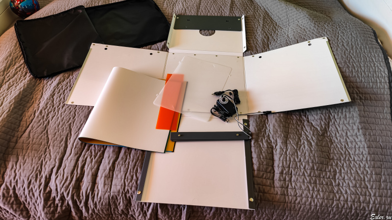 Не сказать, что он был очень удобный. Задник у него крепился на липучке и постоянно отваливался, крепление двух ламп было сделано совершенно безобразно, и лампы также постоянно слетали, рассеивателя для ламп не было, так что они бликовали на глянцевых гранях смартфонов, ну и плюс такой здоровенный куб - 80х80х80 сантиметров - для съемки всяких смартфонов-наушников был явно избыточен, тем более что, например, ноутбуки в нем уже нормально снять было нельзя. А тут белый задник у него окончательно пришел в негодность (загрязнился так, что уже не отчистить), новый задник к нему не купить, и я задумался над тем, чтобы взять себе другой лайтбокс - раза в два меньше и с более удачной конструкцией.