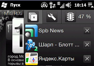 1. В прошивке HD2 пропала такая крайне полезная штука, как HTC X Taskmanager - пиктограмма в правом верхнем углу экрана, нажатие на которой вызывало удобный диспетчер запущенных задач.