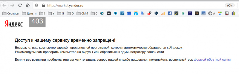 Компьютер, грит, заражен, автоматически обращается к Яндексу. При этом ВСЕ остальные сервисы Яндекса прекрасно открываются. И если я через VPN подставляю российский айпишник, то мой компьютер сразу перестает быть зараженным вредоносной программой, так что Яндекс.Маркет снова распахивает ему свои объятия.
