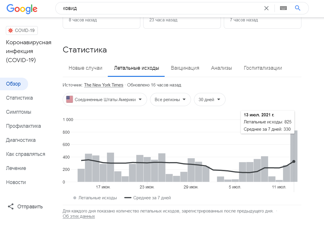 А как по мне так жуть скорость. Я смотрю данные в агрегаторе гугла, по США он тянет дату из NYT. Мне показывает летал 825/330