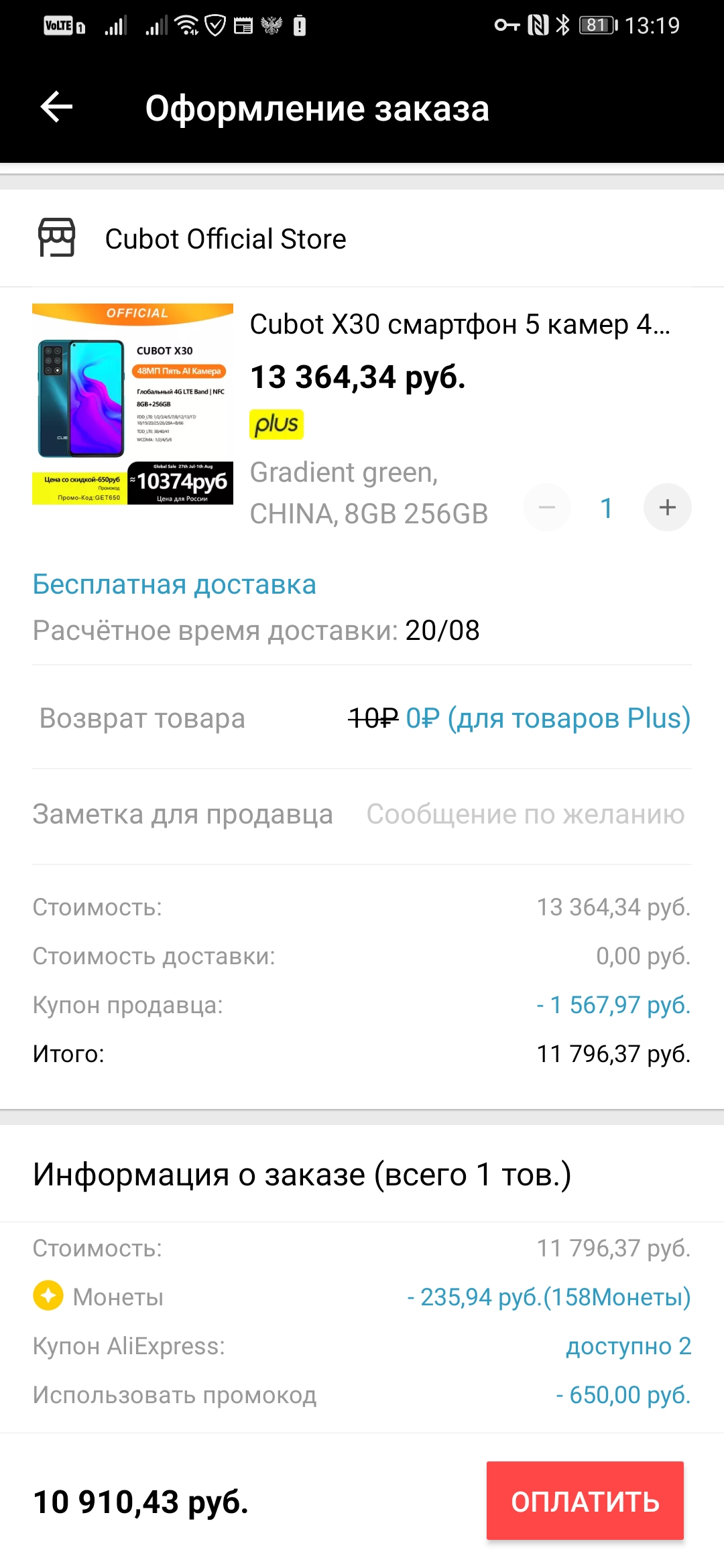 8/256 за десятку это сильно конечно
