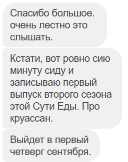 Кстати, с огромным удовольствием слушаю передачи Пархоменко "Суть еды". К сожаления, не помню кто порекомендовал этот подкаст в посте, где их обсуждали. Большое спасибо, друг! Если прочтешь мой скромный коммент 😄